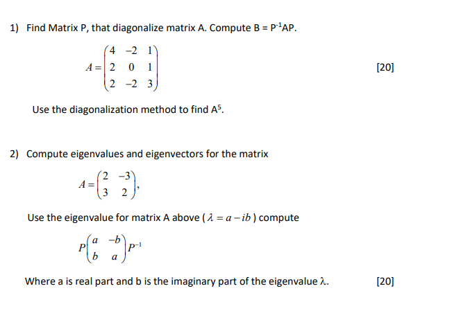 Solved 1 Find Matrix P That Diagonalize Matrix A Compute Chegg Com